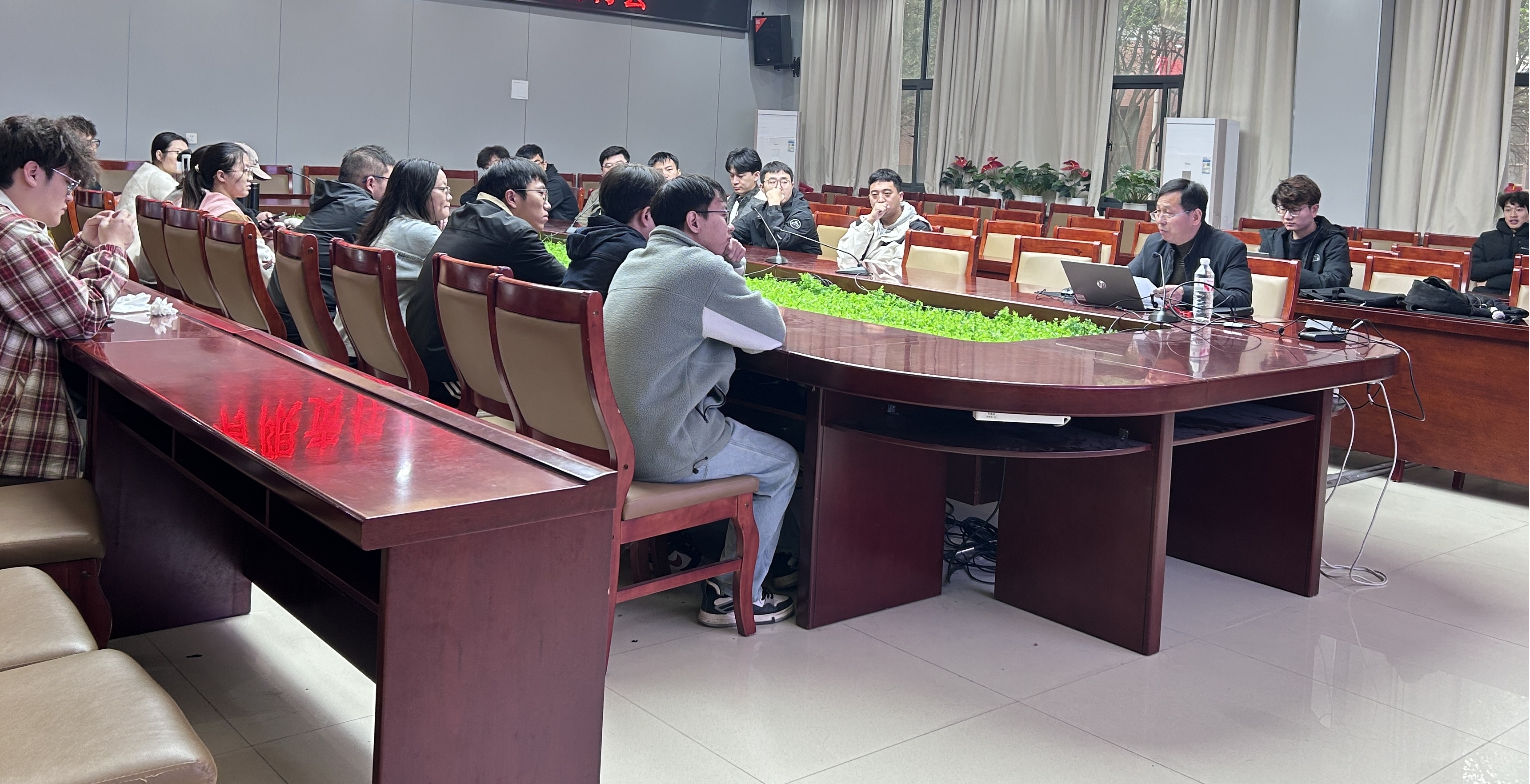 在101会议室召开研究生师生座谈会,副院长柴华彬与研究生代表进行会谈,辅导员刘赛思主持会议。