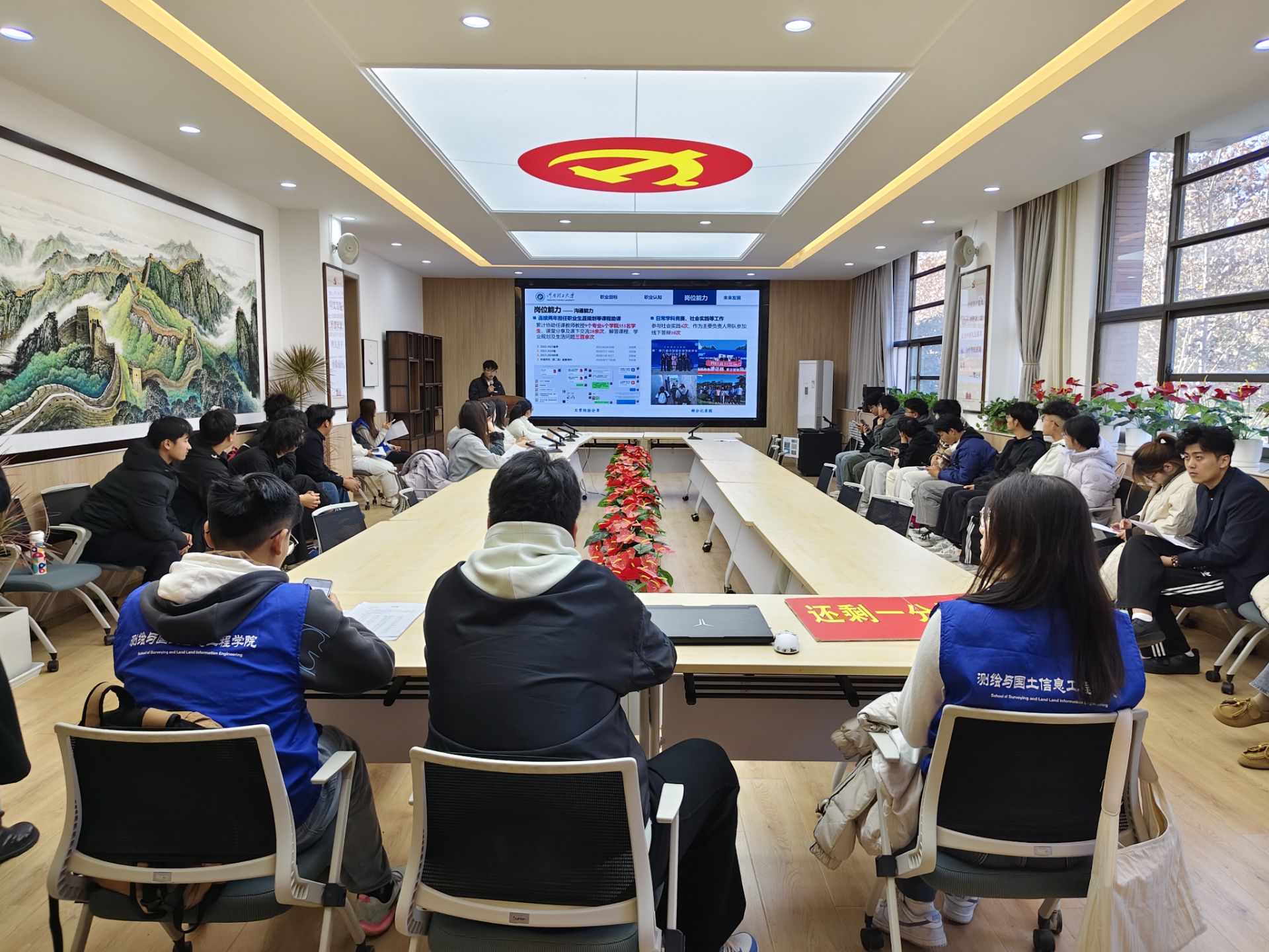 分享环节,吴浩泽、鲁瑞波结合自身测绘领域学习实践与职业探索经历,带来丰富的经验。他们围绕行业发展趋势、岗位核心能力要求展开分享,详细拆解如何结合个人优势设定合理职业目标,如何在学业阶段积累实习经验、搭建行业人脉,并针对“规划落地难”“方向易迷茫”等共性问题给出实操建议,为参赛同学提供了极具价值的参考。