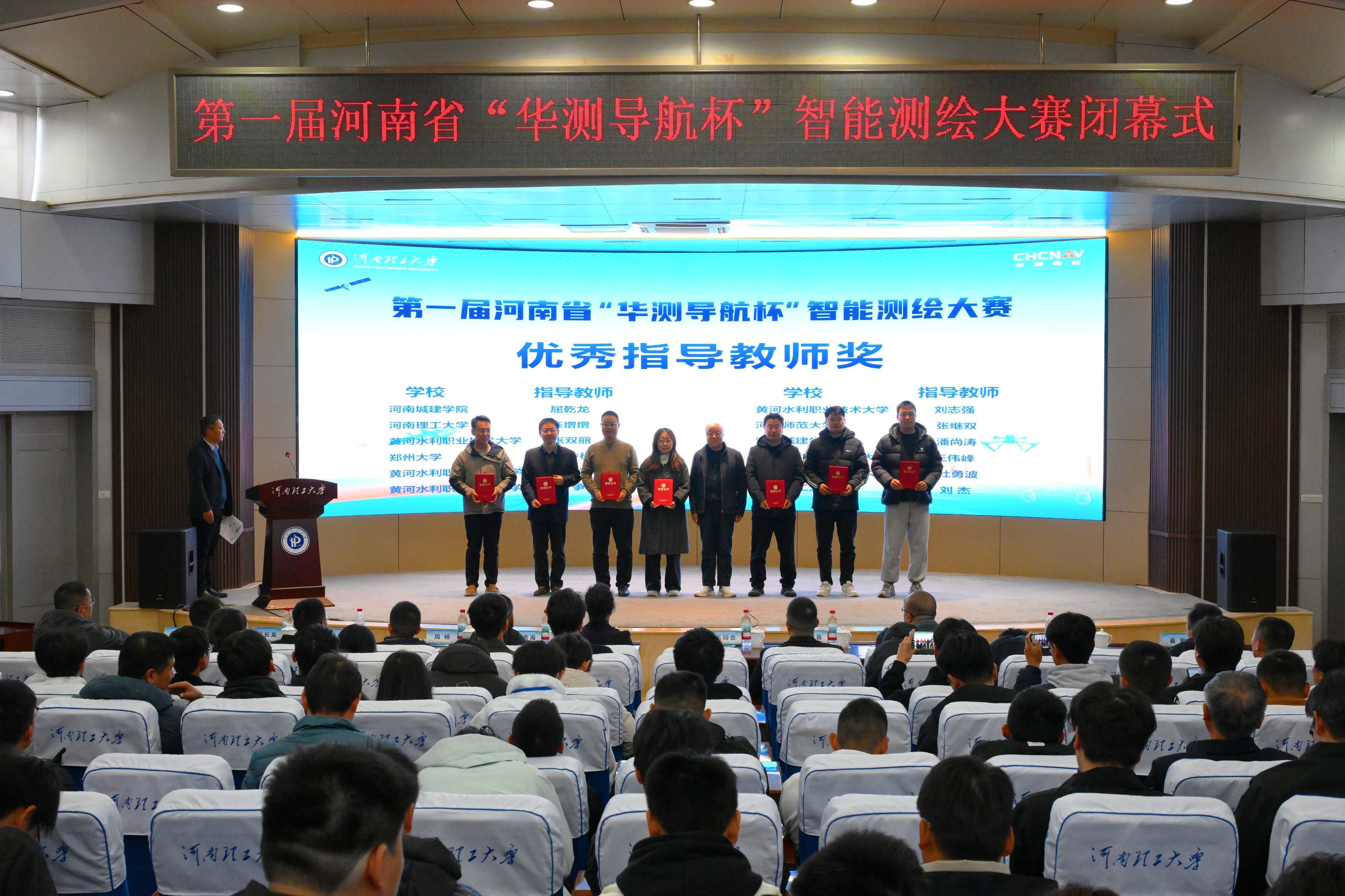 闭幕式上,竞赛总裁判长、中国人民解放军战略支援部队信息工程大学王同合教授宣布比赛结果,周杨教授对比赛情况进行点评。河南省“华测导航杯”智能测绘大赛,为全省测绘学子搭建了高水平的专业实践与交流平台,是深化产教融合、创新育人机制的重要实践,为培养适应新时代需求的高素质测绘人才、推动行业高质量发展注入了强劲动力。