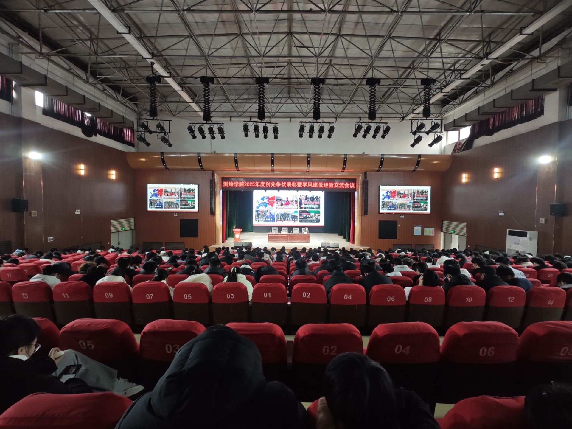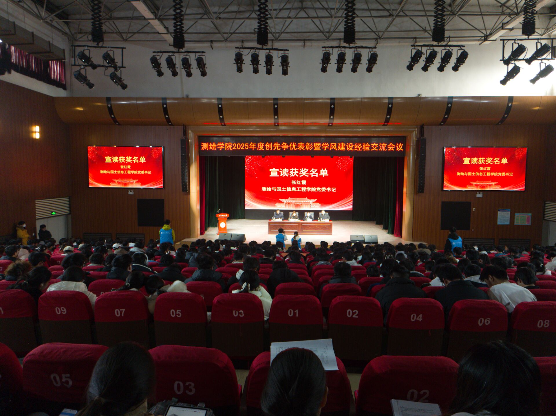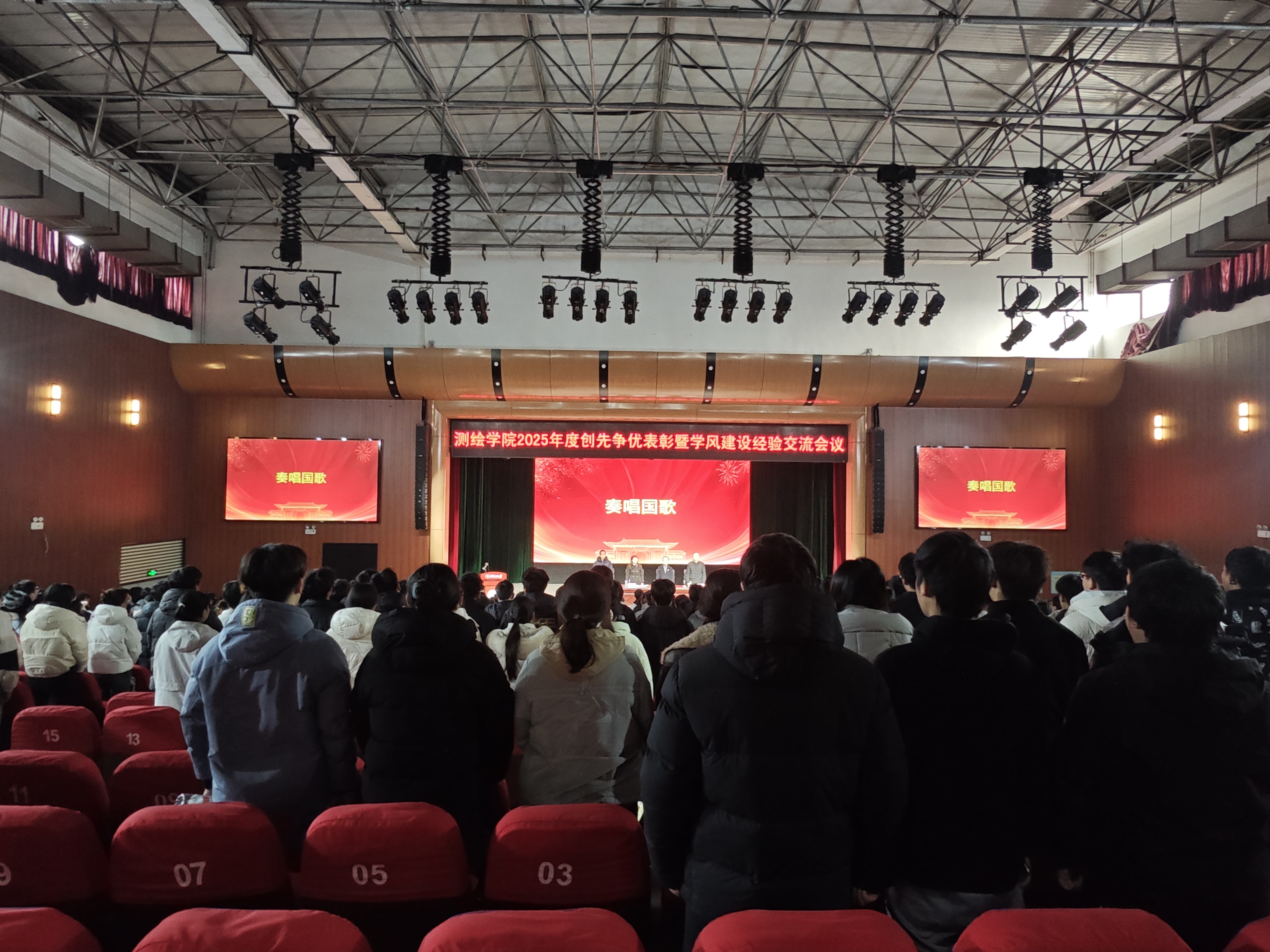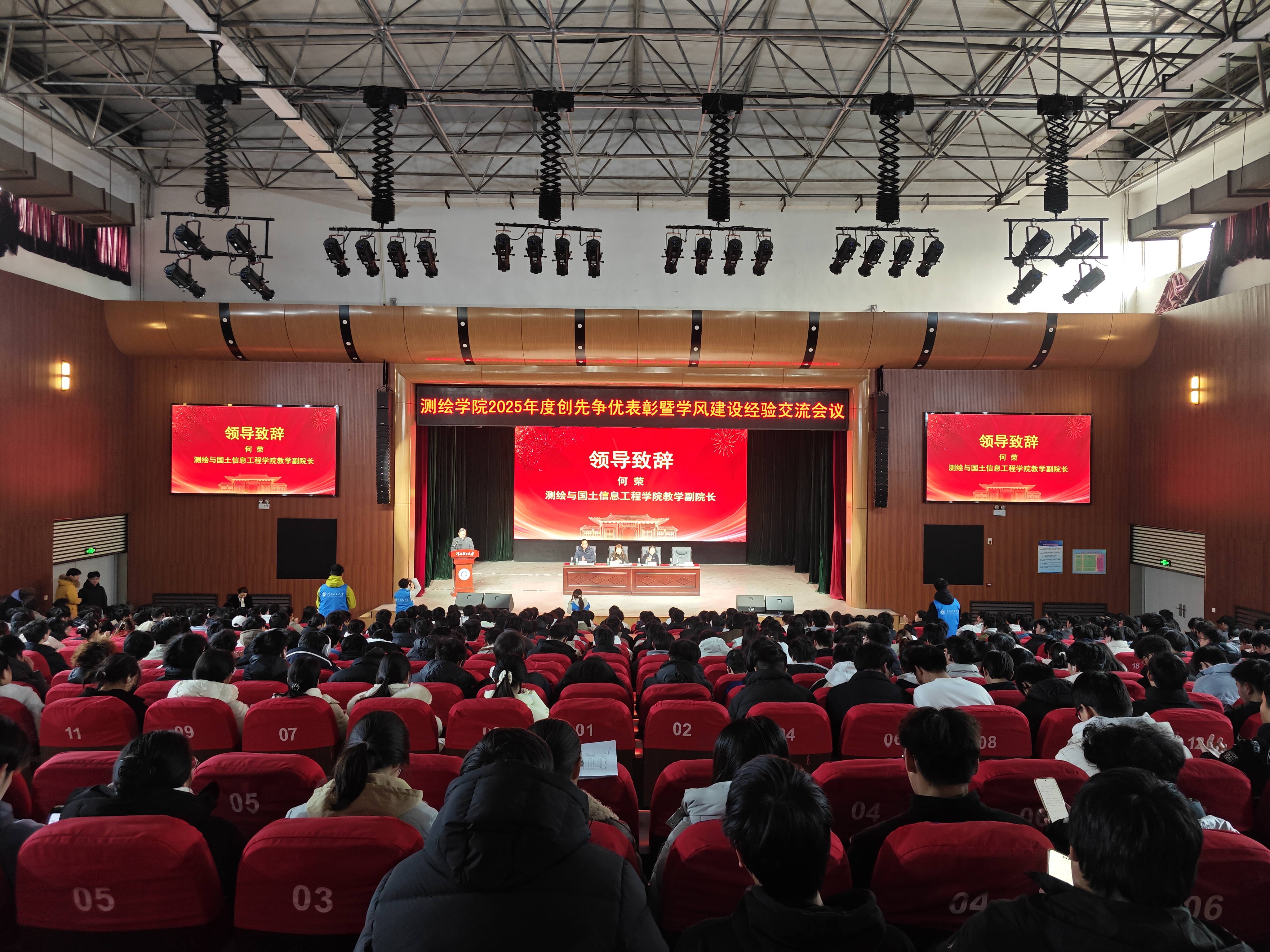 大会在庄严的国歌声中拉开帷幕。张红霞发表讲话,她对测绘学生提出三点希望:一是希望同学们深刻认识时代使命,将个人理想融入国家发展大局。二是希望同学们准确把握成才路径,在求真务实中练就过硬本领。三是希望同学们积极开展创先争优,在比学赶超中实现共同进步。
