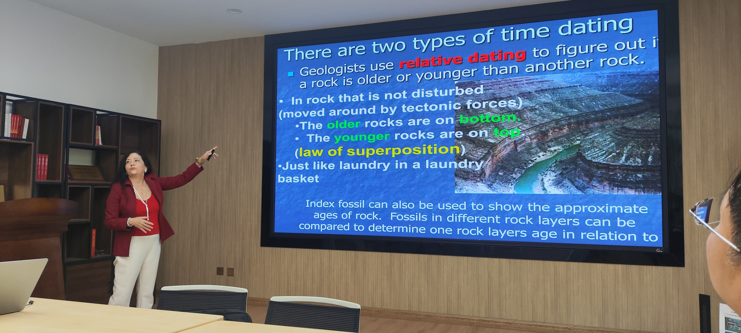 Luis教授和Maria教授分别以《High Energy Particles in the Near-Earth Environment》和《Radioisotope-Based Geochronology》为题作学术报告。Luis教授系统的讲解了高能粒子的起源、特性及其在通信、能源、航空航天导航等领域的应用;Maria教授阐述了在不同地质环境下精确年代估测的原理,并将年代学数据与地球化学、岩石学分析相结合,展示了精确年代框架在古气候研究、矿产勘探及行星科学背景下地球演化研究中的重要作用。